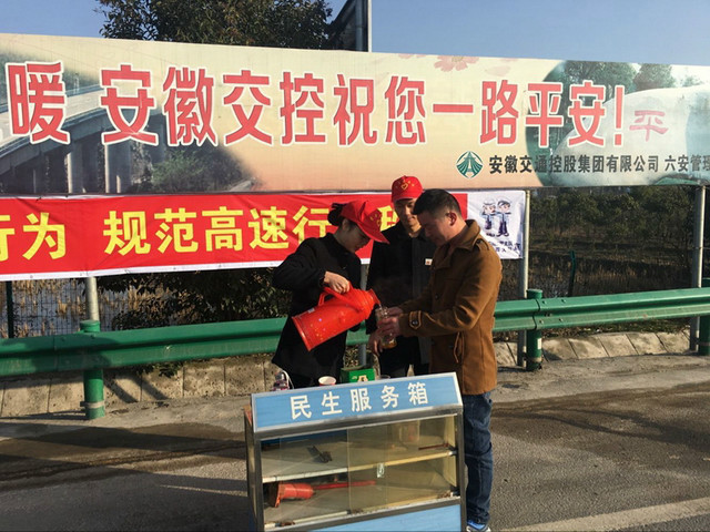 各營運單位團組織成立“暖冬行動”志愿服務小分隊,組織志愿者們在收費道口進行車輛疏導、法規宣傳、新春送福、便民服務等志愿服務活動,同時充分利用高速公路沿線情報板、懸掛橫幅、散發宣傳單等方式,廣泛營造“暖冬行動”的濃厚氛圍。金寨公司、池州中心、傳媒公司以“志愿行、春運路”為主題,結合實際開展特色活動;六安公司六安北站團支部積極動員各收費班組制作了二維碼支付卡,為很多沒充裕現金繳納通行費的司機朋友解決了燃眉之急;省交運集團通過提供上門售票、提前預訂團體票和往返票、增設專門窗口等創新售票方式積極服務乘客出行;高速石化開展“春運有我”志愿服務活動,號召公司團員青年深入一線協助維護加油秩序、為顧客提供便民服務;驛達公司各服務區開展了“送服務、送溫暖”主題活動。
