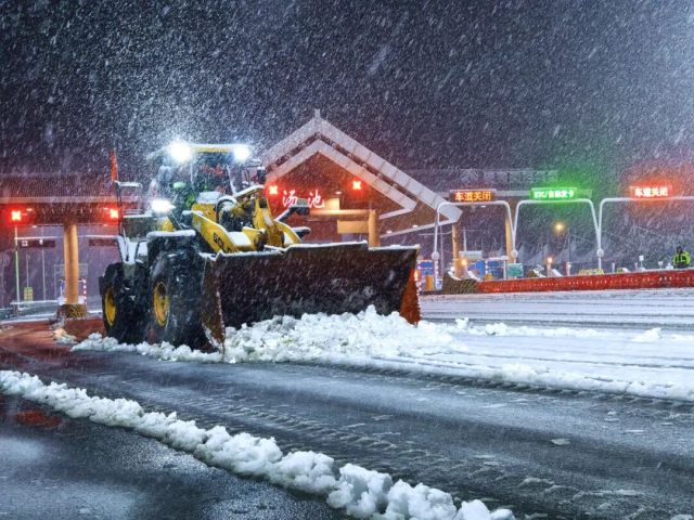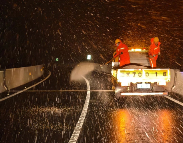 養護公司緊急調集“國儲中心”除雪車輛馳援降雪路段營運單位,并組成由除雪滾刷車、融雪劑撒布車的作業編隊迅速到位,對關鍵路段展開多輪次、不間斷除雪作業。