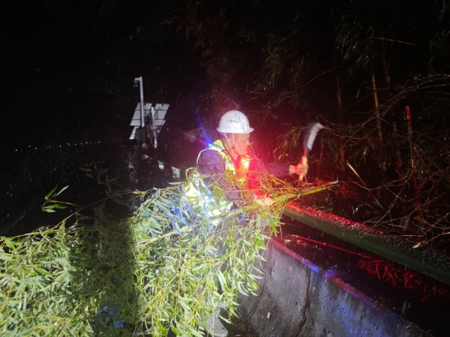 六安中心巡查人員清理沿線倒伏樹木