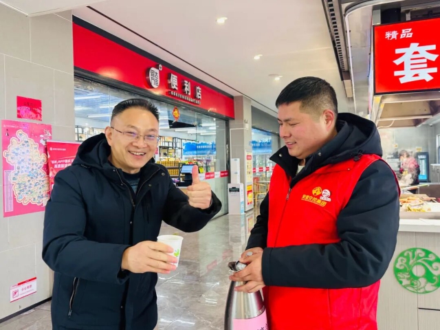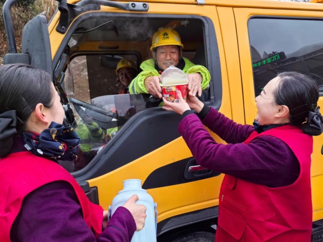 驛達集團石沛服務區志愿者為司乘人員送上暖心姜茶