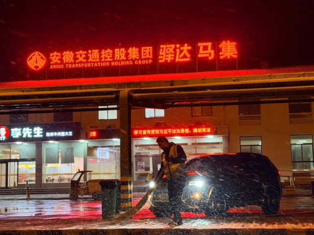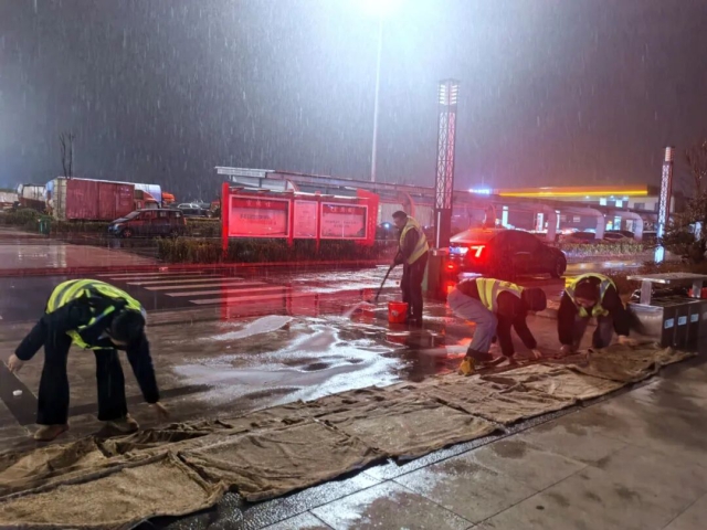 驛達集團馬集服務區工作人員清理廣場積雪