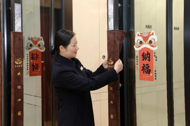 地產集團合肥高速·尚闔院物業管家為單元門把手穿上絨布套