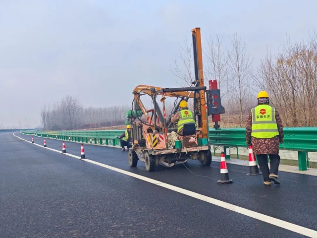 合徐南高速改擴建項目工作人員開展交安護欄施工