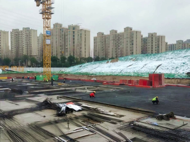 交控建工集團廬江縣醫療衛生應急能力提升項目工人進行筏板鋼筋施工
